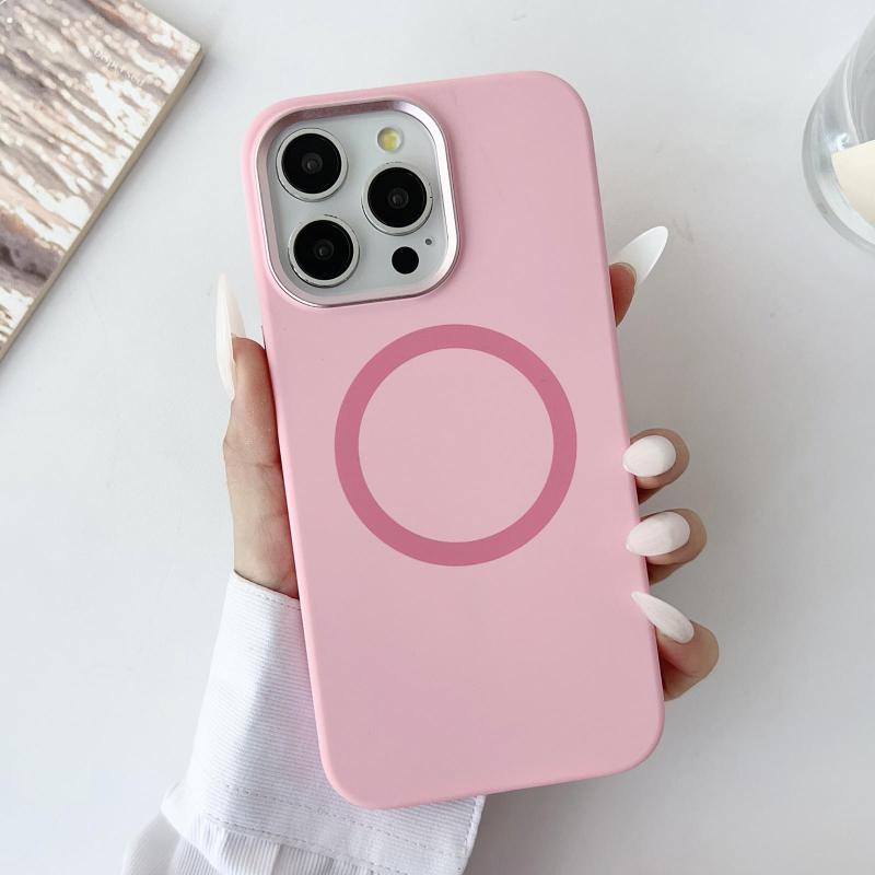 Θήκη iPhone 14 Pro με μεταλλικό πλαίσιο, σιλικόνη & MagSafe (Peach Ροζ)