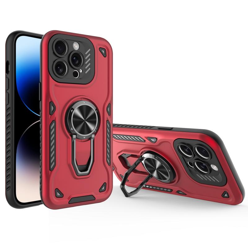 For iPhone 14 Pro Metal Rotating Bracket TPU + PC Magnetic Phone Case(Red)