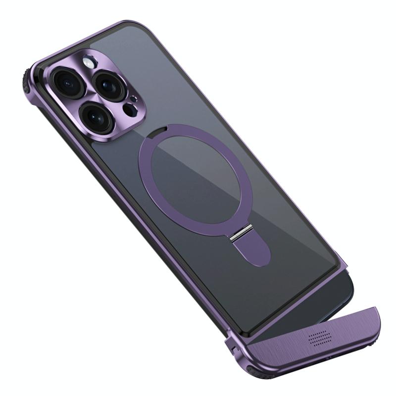 For iPhone 14 Pro Metal Scissor Design Aroma MagSafe Ring Holder Phone Case(Purple)