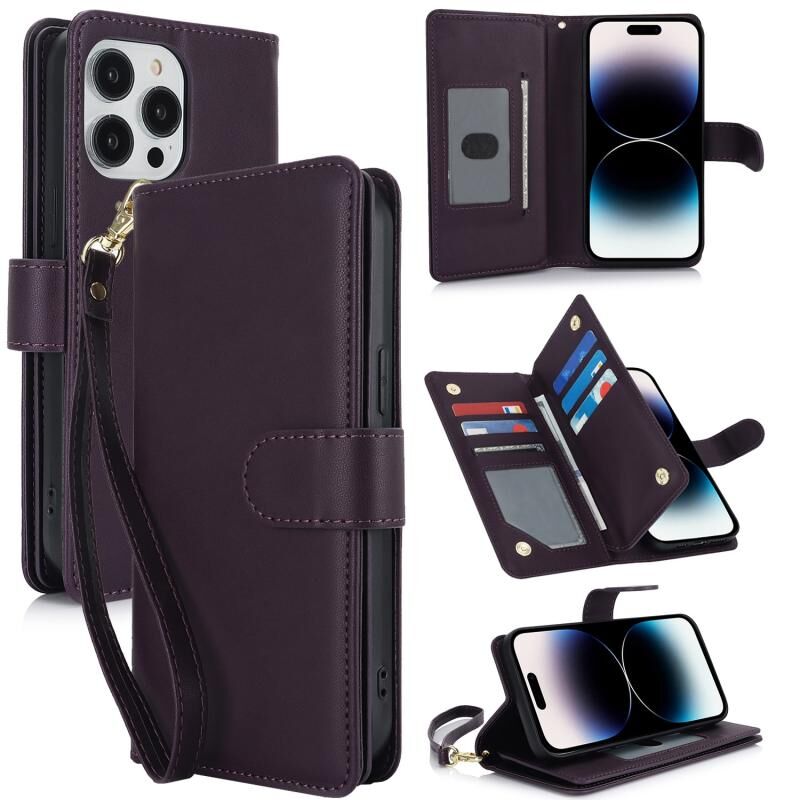For iPhone 14 Pro Multi-Card Wallet RFID Leather Phone Case(Dark Purple)