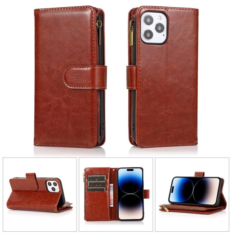 Θήκη δέρματος πολλαπλών λειτουργιών για iPhone 14 Pro με 9 υποδοχές καρτών (Κόκκινο)