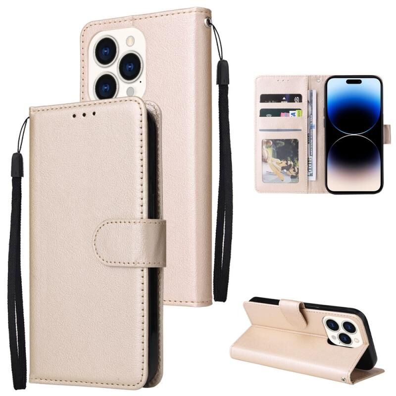 Θήκη για iPhone 14 Pro, πολυλειτουργική οριζόντια δερμάτινη με τρεις θήκες για κάρτες (Καφέ)