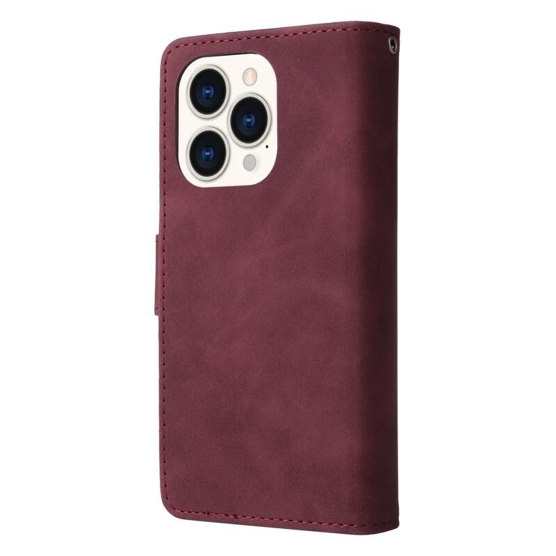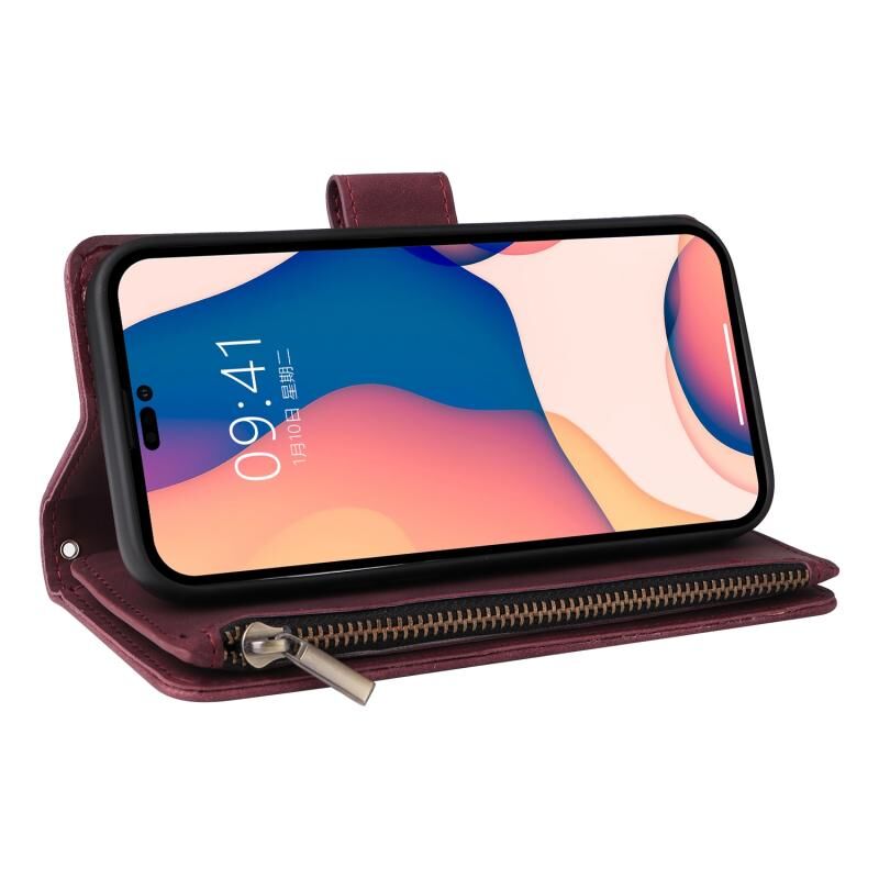 Θήκη δέρματος για iPhone 14 Pro, πολυλειτουργική με θήκη για κάρτες (Κόκκινο Κρασί)