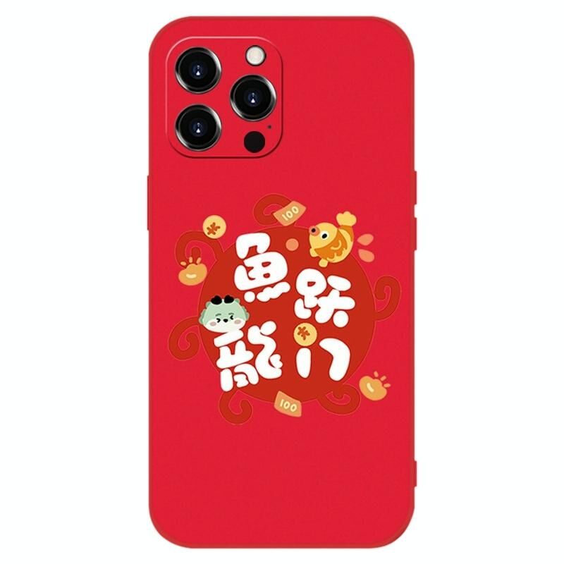 Θήκη σιλικόνης για iPhone 14 Pro, αντικραδασμική, κόκκινη για το Νέο Έτος (Ψάρι, Πύλη Δράκου)