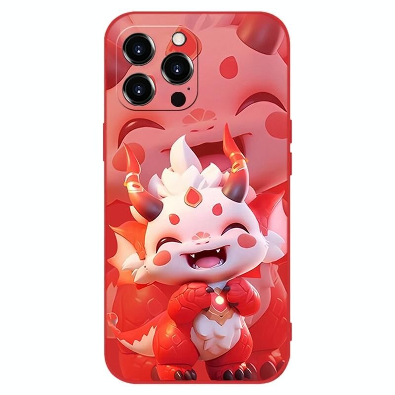 Θήκη τηλεφώνου σιλικόνης αντικραδασμική για iPhone 14 Pro, Κόκκινη, Νέο Έτος (Χαρούμενη Κούκλα Δράκος)