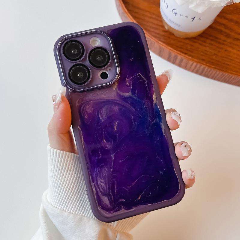 Θήκη τηλεφώνου για iPhone 14 Pro, λαδομπογιά, επιμετάλλωση, TPU (Ροζ)