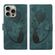 For iPhone 14 Pro Pen Heart Cat Embossed Leather Phone Case(Green)