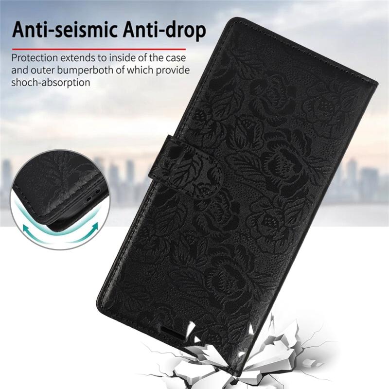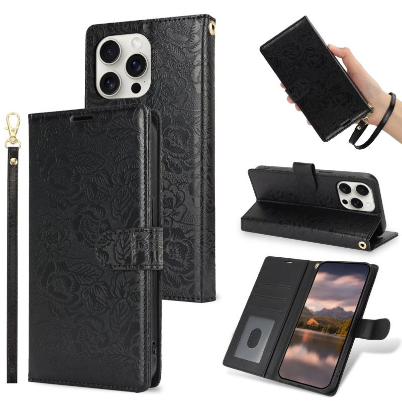 For iPhone 14 Pro Peony Flowers Imprint Leather Phone Case(Black)