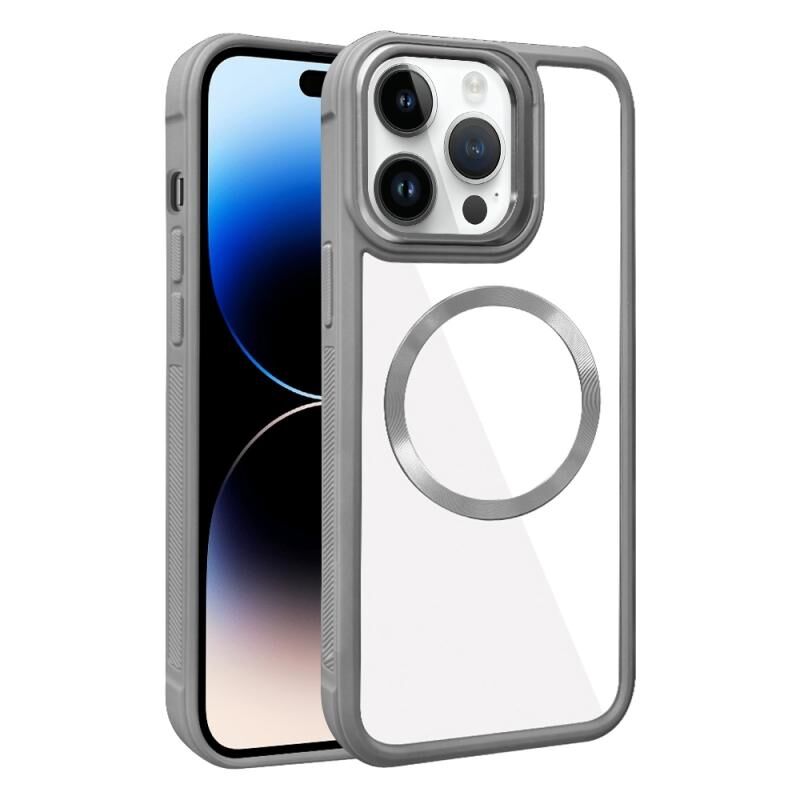 Θήκη τηλεφώνου για iPhone 14 Pro με επιμετάλλωση, υφή CD, MagSafe, υβριδική από ακρυλικό και TPU (Γκρι)