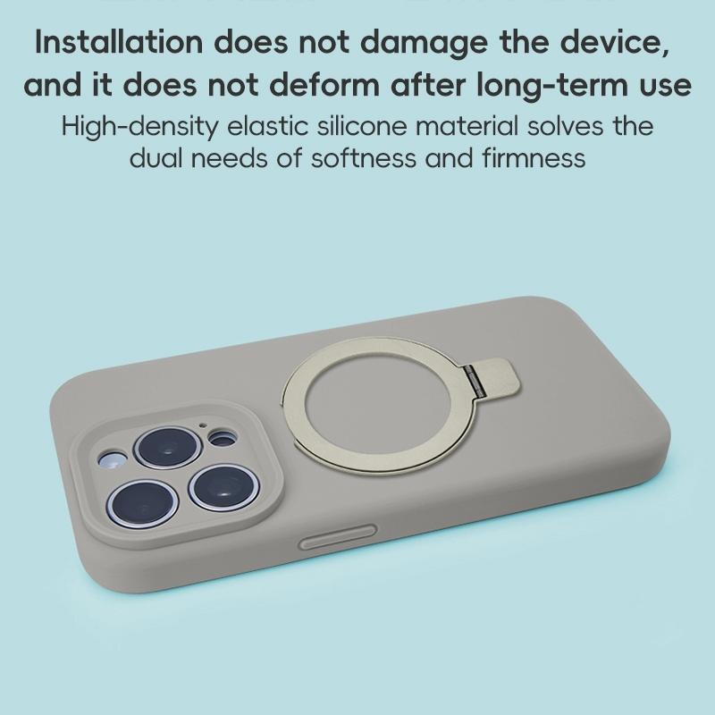 For iPhone 14 Pro Precision Hole Liquid Silicone MagSafe Metal Ring Holder Phone Case(Rock Grey)
