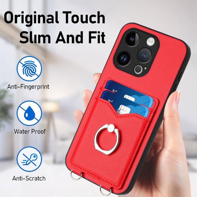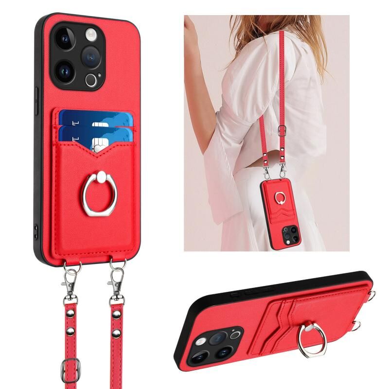 Θήκη τηλεφώνου για iPhone 14 Pro R20, θήκη με κορδόνι, δακτύλιο και κάρτες (Μαύρο)