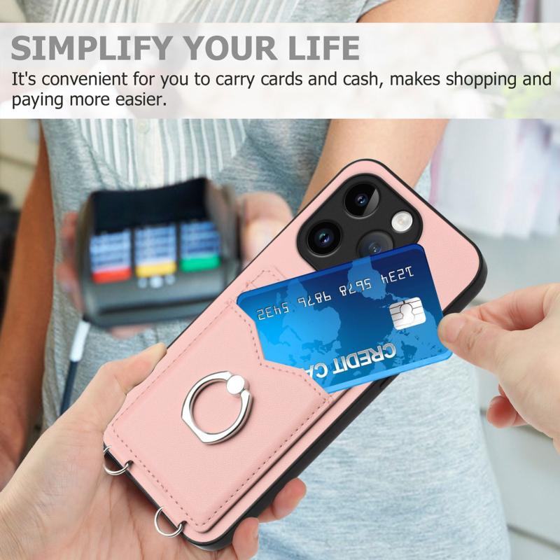 Θήκη τηλεφώνου με δακτύλιο-κάρτα για iPhone 14 Pro R20 (Ροζ)
