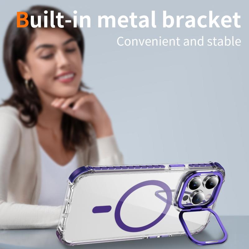 For iPhone 14 Pro Rainbow Series Transparent MagSafe Lens Holder Phone Case(Purple)