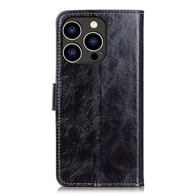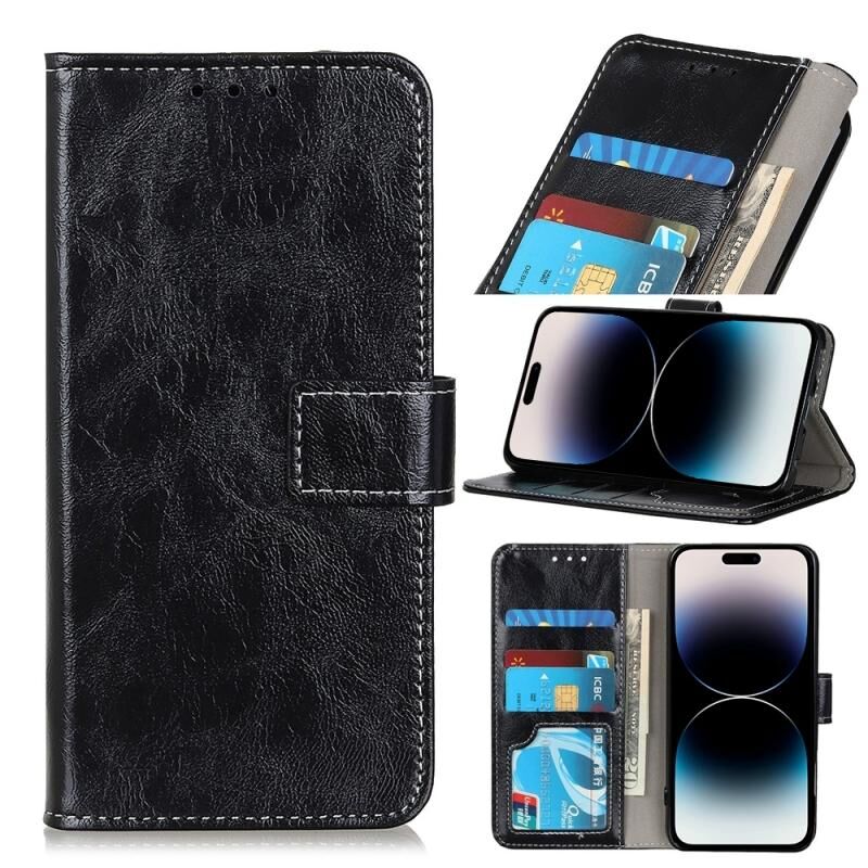 Θήκη τηλεφώνου από δέρμα με οριζόντιο άνοιγμα για iPhone 14 Pro με υφή Retro Crazy Horse (Μαύρο)
