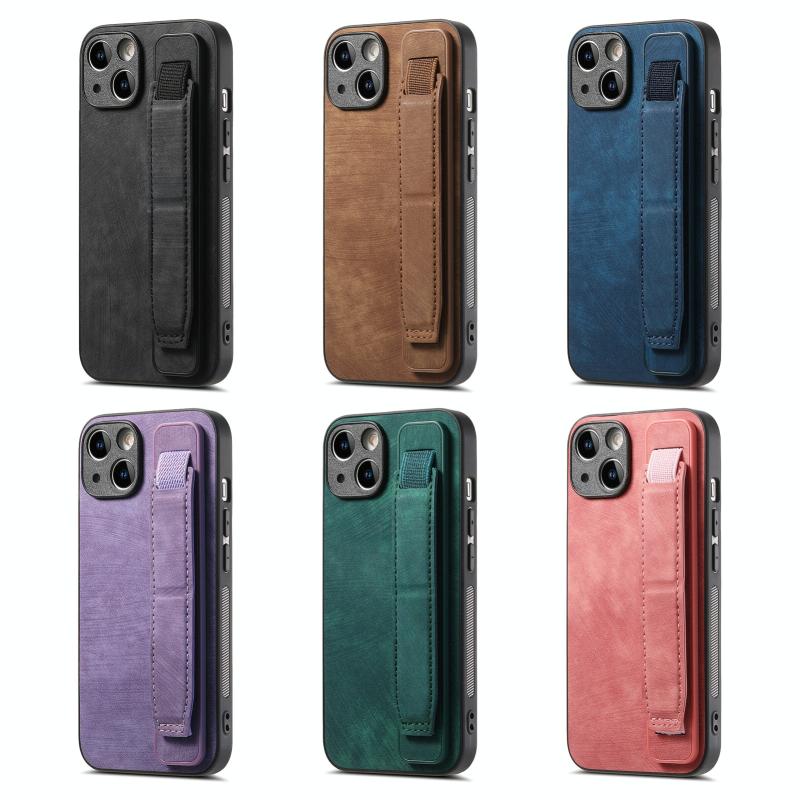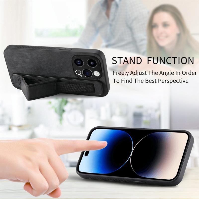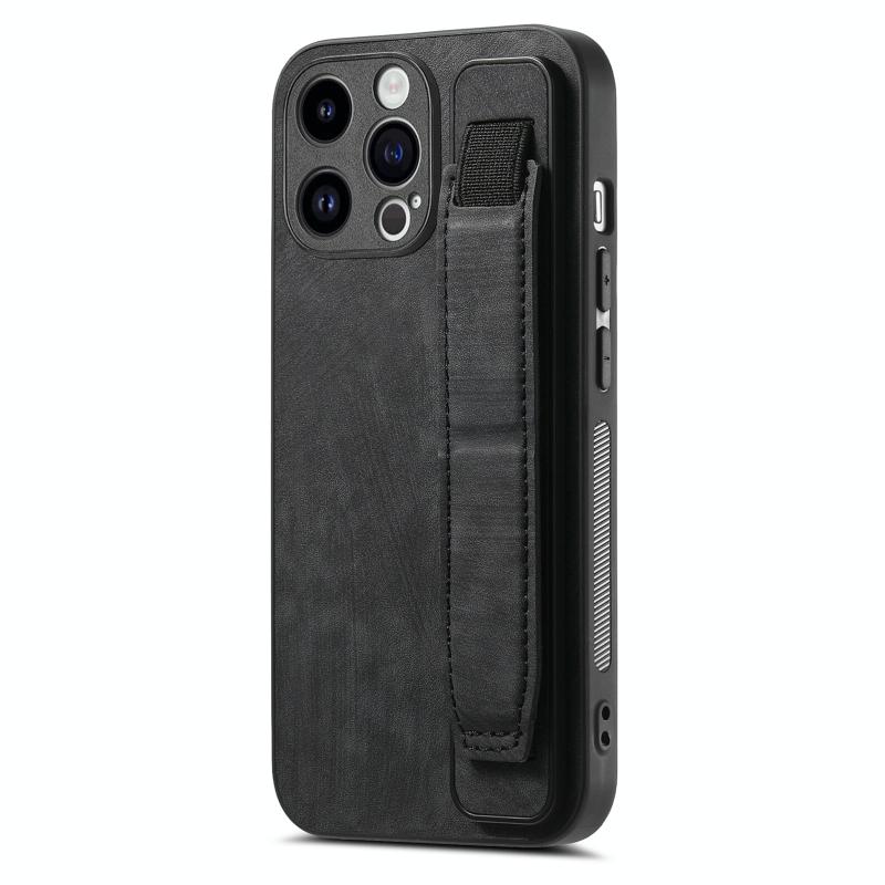Θήκη iPhone 14 Pro με Δερμάτινο Λουράκι Καρπού & Στήριξη (Μαύρο)