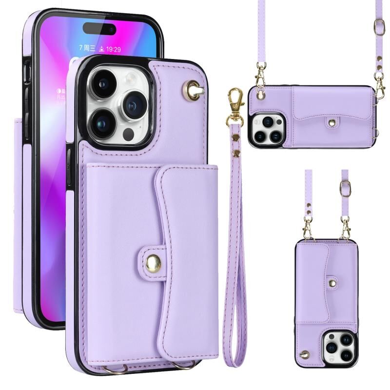 Θήκη κινητού για iPhone 14 Pro με υποδοχή κάρτας RFID και μακρύ λουρί (Μαύρο)