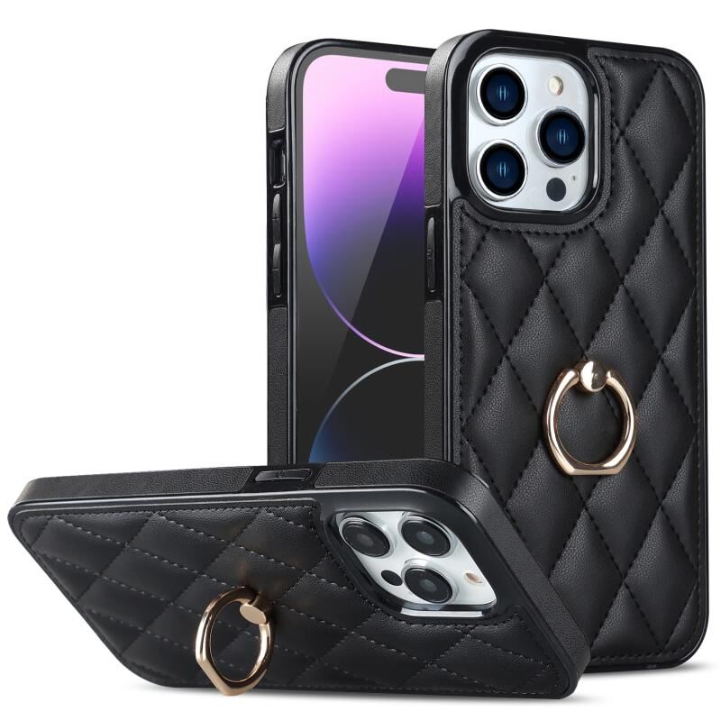 Θήκη τηλεφώνου για iPhone 14 Pro από δερματίνη PU με ρόμβους και δακτύλιο στήριξης (Λευκό)