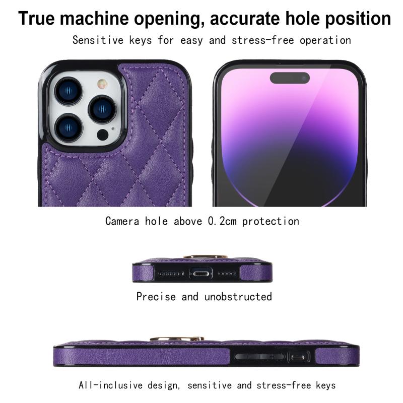 For iPhone 14 Pro Rhombic PU Leather Phone Case with Ring Holder(Purple)