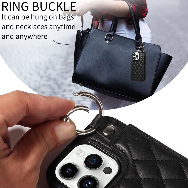 Θήκη τηλεφώνου για iPhone 14 Pro με υφή ρόμβου και κάρτα, με κοντό κορδόνι (Λευκό)