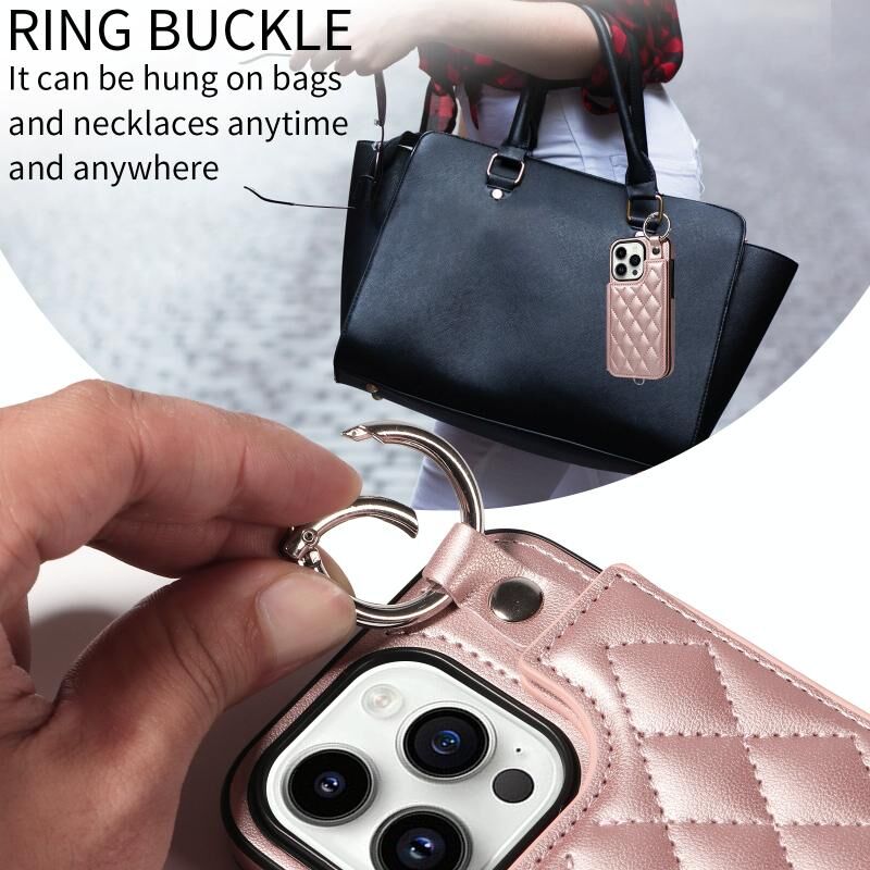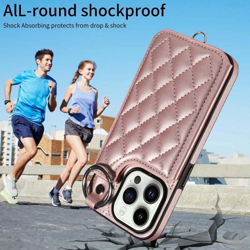 Θήκη τηλεφώνου για iPhone 14 Pro με υφή ρόμβου και κάρτα, με κοντό κορδόνι (Λευκό)