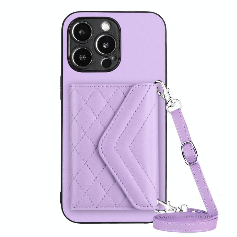 Θήκη κινητού τηλεφώνου RFID με υφή ρόμβου και μακρύ κορδόνι για iPhone 14 Pro (Πράσινο)