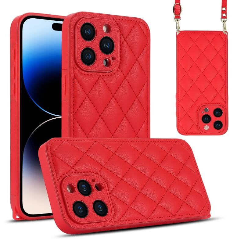 Θήκη τηλεφώνου με υφή ρόμβου για iPhone 14 Pro με διπλό κορδόνι (Μαύρο)