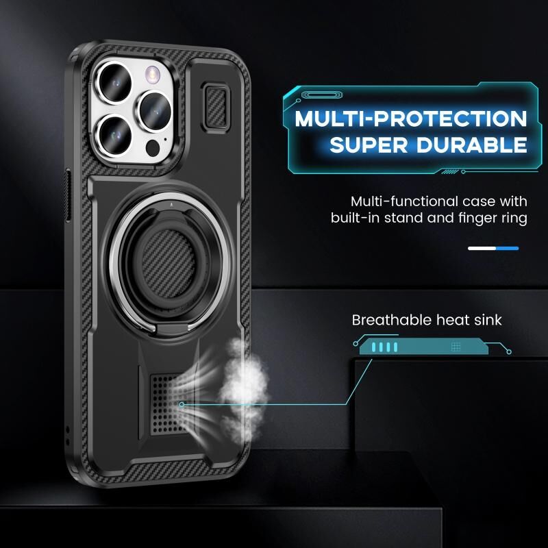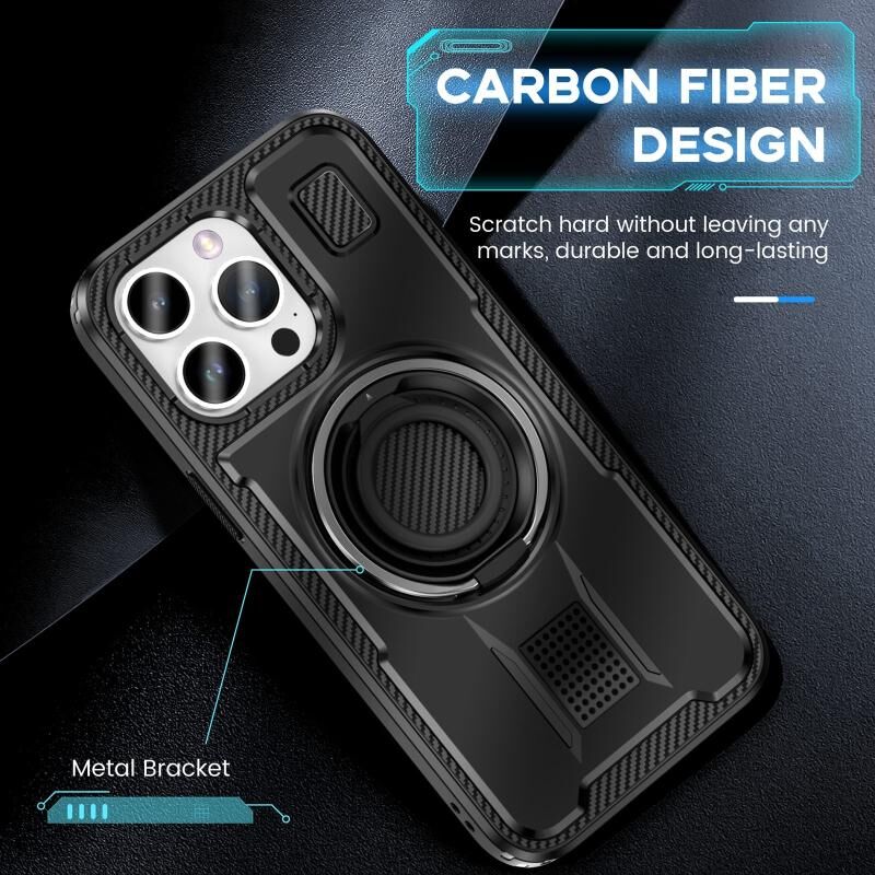 Θήκη τηλεφώνου για iPhone 14 Pro με δακτύλιο, υβριδική από ανθρακονήματα PC και TPU (Μαύρο)