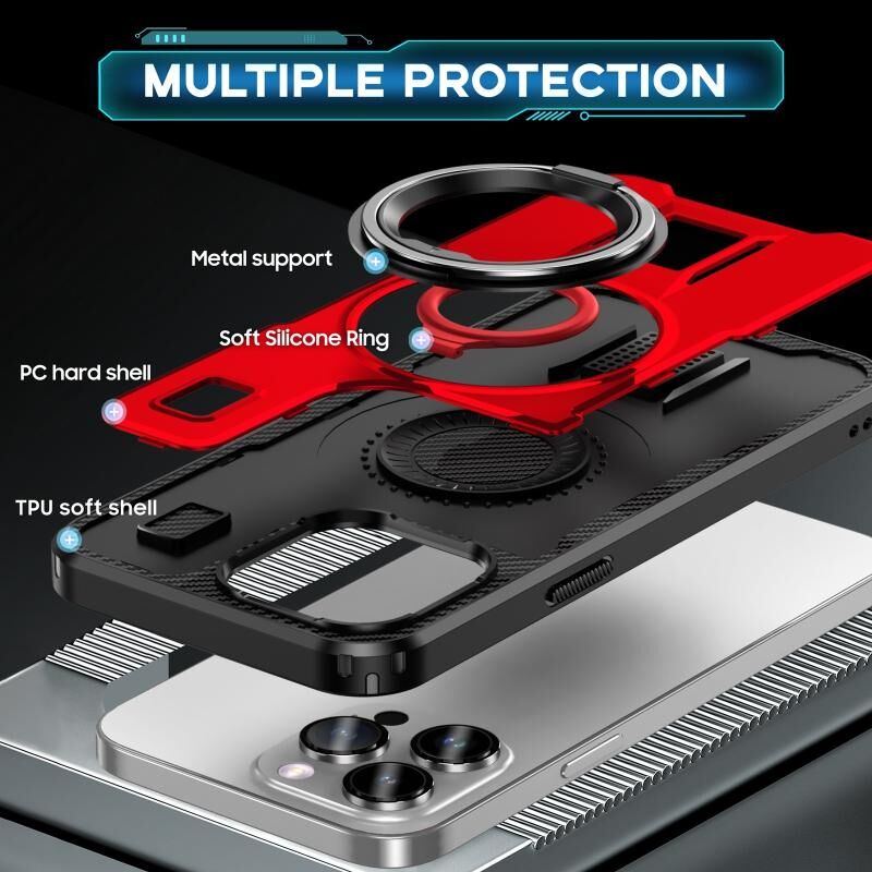 3. Δακτύλιος Σιλικόνης και Βάση: Δεν παρέχει μόνο βασική προστασία, αλλά η θήκη λειτουργεί και ως λαβή για να κρατάτε σταθερά το τηλέφωνό σας. Και ως βάση τηλεφώνου που επιτρέπει την κατακόρυφη ή οριζόντια λειτουργία σε πολλαπλές γωνίες.