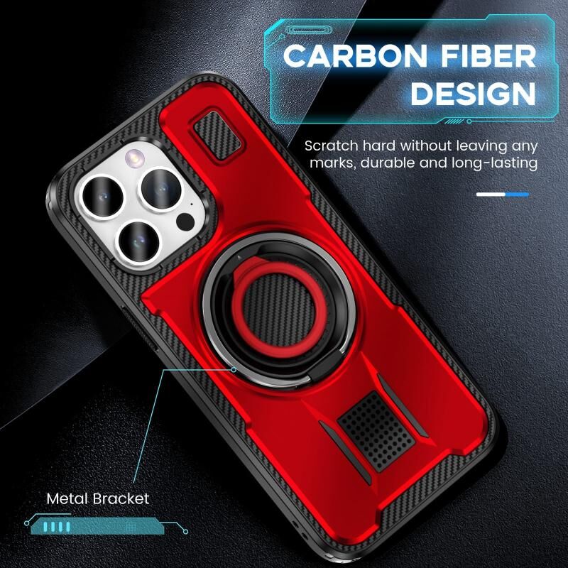 Θήκη τηλεφώνου για iPhone 14 Pro με δακτύλιο στήριξης, υβριδική από ανθρακονήματα PC και TPU (Λευκό)