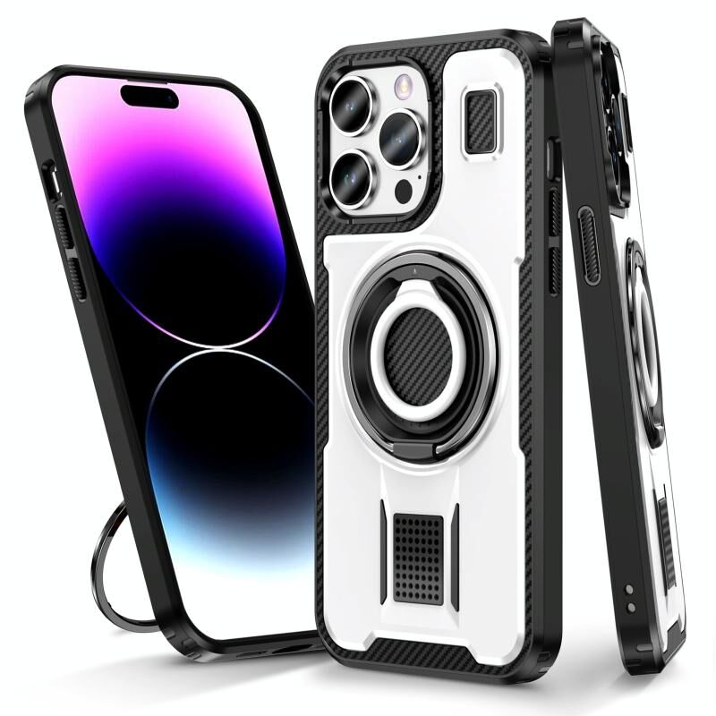 Θήκη τηλεφώνου για iPhone 14 Pro με δακτύλιο στήριξης, υβριδική από ανθρακονήματα PC και TPU (Λευκό)