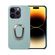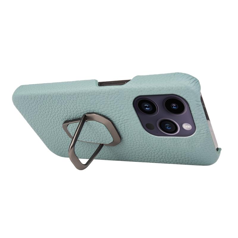 For iPhone 14 Pro Ring Holder Litchi Texture Genuine Leather Phone Case(Cyan)