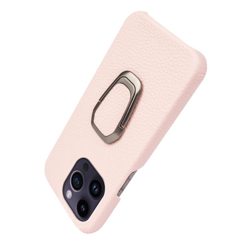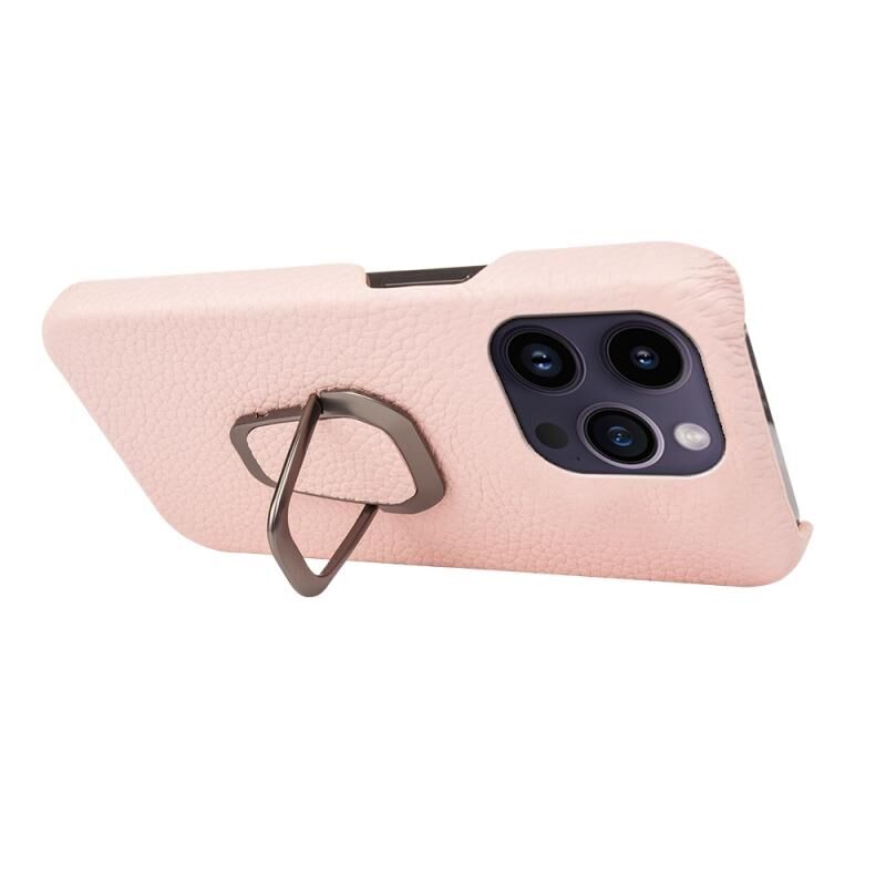 For iPhone 14 Pro Ring Holder Litchi Texture Genuine Leather Phone Case(Pink)