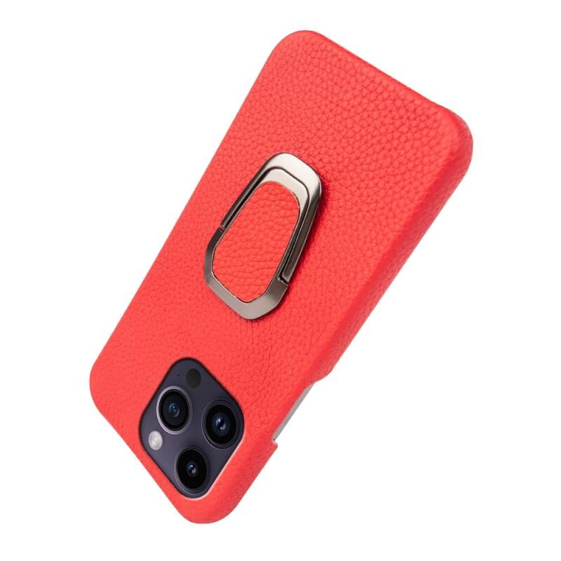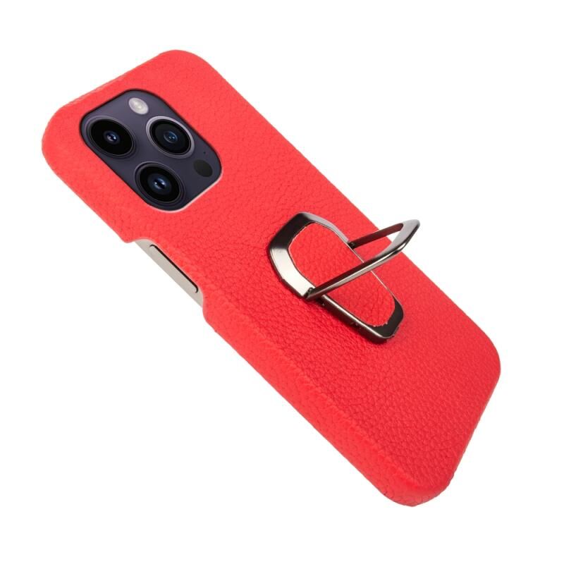 Θήκη τηλεφώνου από γνήσιο δέρμα με υφή λitchi για iPhone 14 Pro με δακτύλιο στήριξης (Κόκκινο)