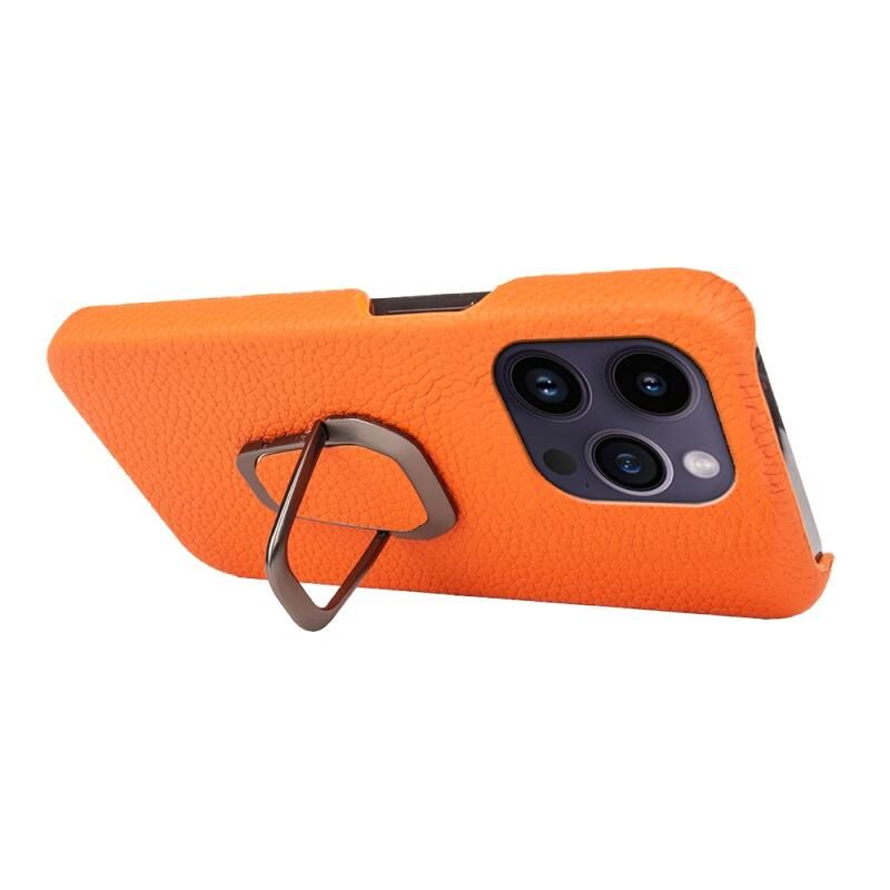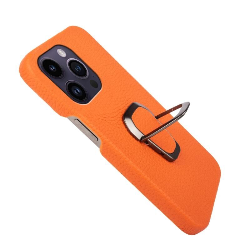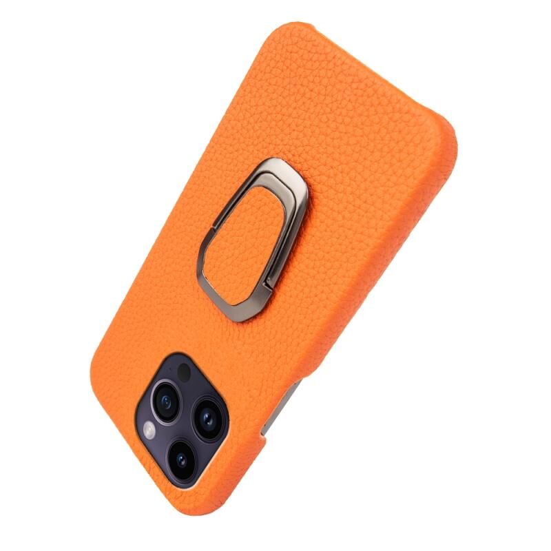 Θήκη τηλεφώνου από γνήσιο δέρμα με υφή λitchi για iPhone 14 Pro με δακτύλιο στήριξης (Κόκκινο)