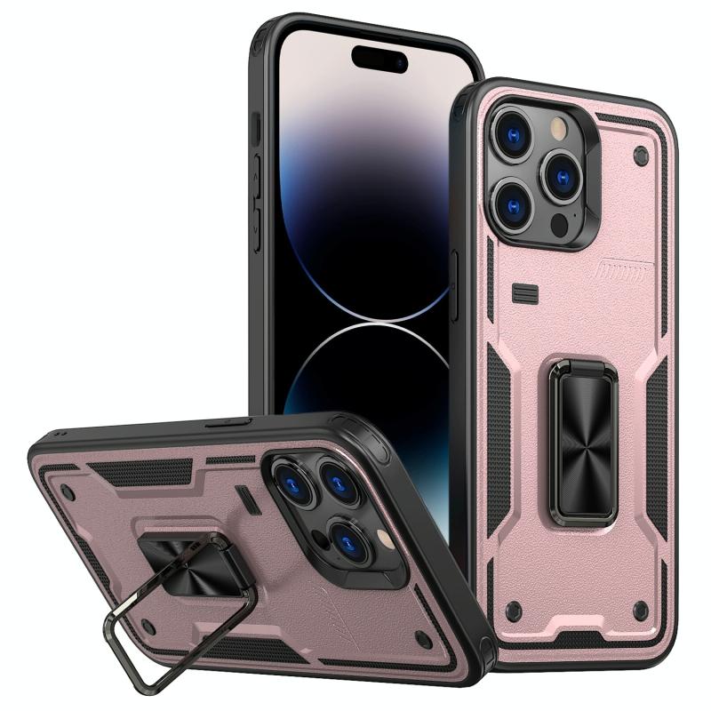 For iPhone 14 Pro Ring Holder PC Hybrid TPU Phone Case(Rose Gold)