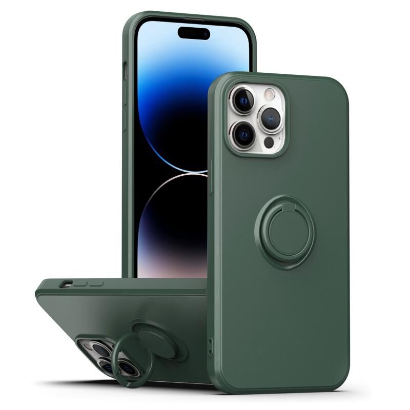 Θήκη σιλικόνης για iPhone 14 Pro με ενσωματωμένο στήριγμα δακτυλιδιού (Μαύρο)