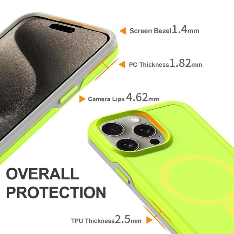 For iPhone 14 Pro Shockproof MagSafe Armor PC Hybrid TPU Phone Case(Fluorescent Green+Gray)