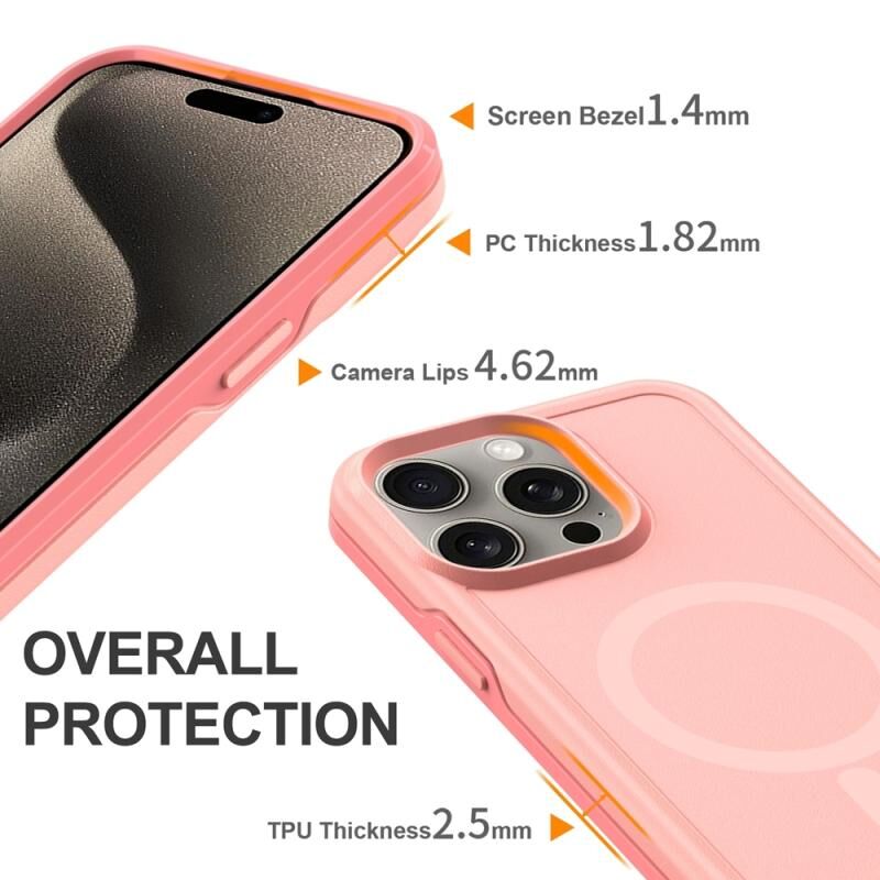 For iPhone 14 Pro Shockproof MagSafe Armor PC Hybrid TPU Phone Case(Light Pink+Coral Red)