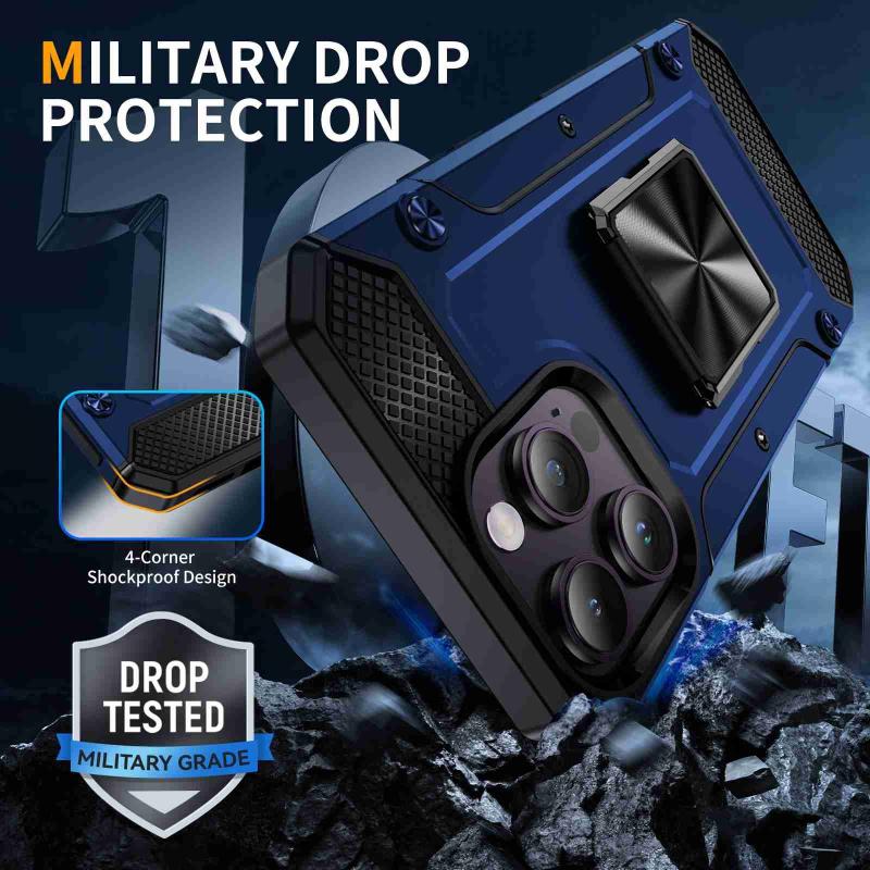For iPhone 14 Pro Shockproof Metal Holder Phone Case(Blue)