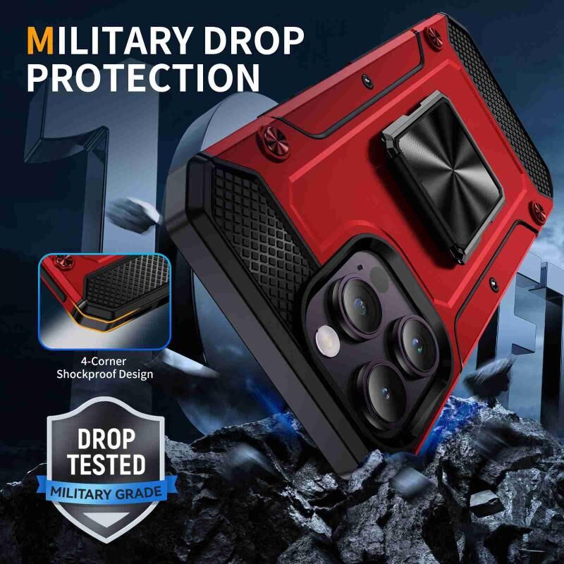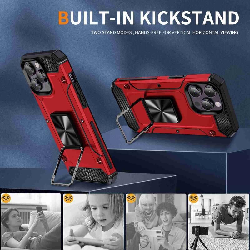 Θήκη τηλεφώνου για iPhone 14 Pro ανθεκτική στις κρούσεις με μεταλλική βάση στήριξης (Χακί Πράσινο)