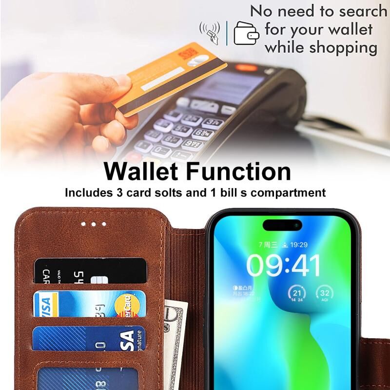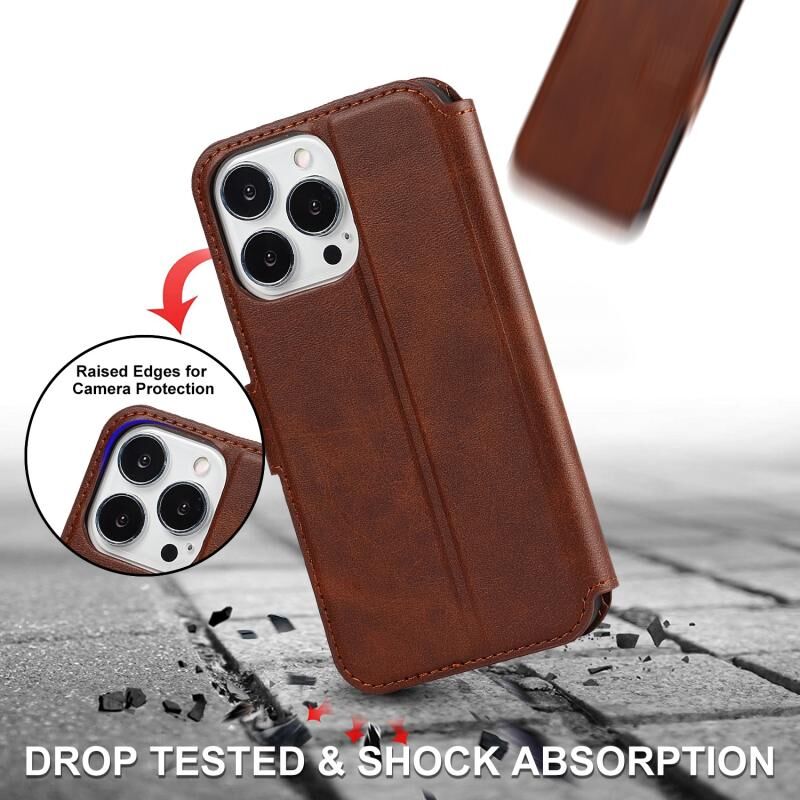 Θήκη κινητού τηλεφώνου για iPhone 14 Pro ανθεκτική στις κρούσεις, από δέρμα PU + TPU (Μαύρο)