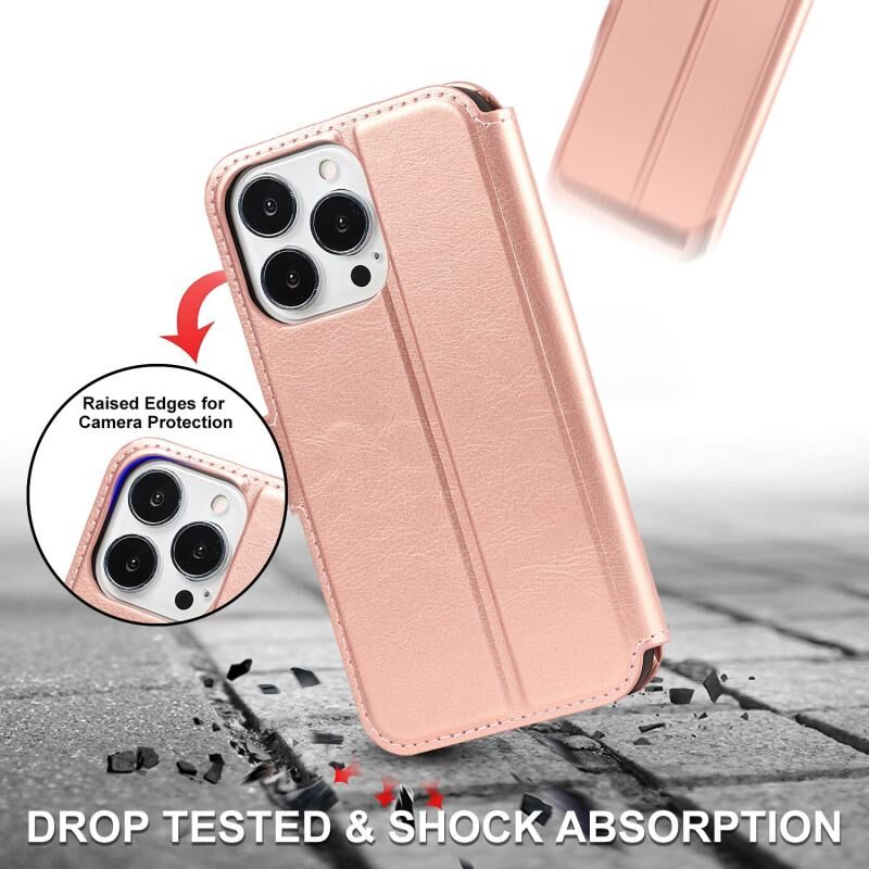 Θήκη κινητού τηλεφώνου για iPhone 14 Pro ανθεκτική στις κρούσεις, από δέρμα PU + TPU (Μαύρο)