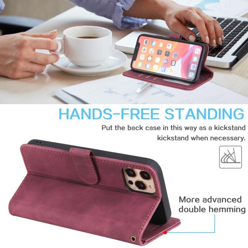 Θήκη τηλεφώνου δέρματινη οριζόντιας αναδίπλωσης για iPhone 14 Pro με αίσθηση δέρματος, αντι-κλοπής και βούρτσα (Καφέ)