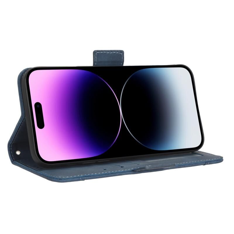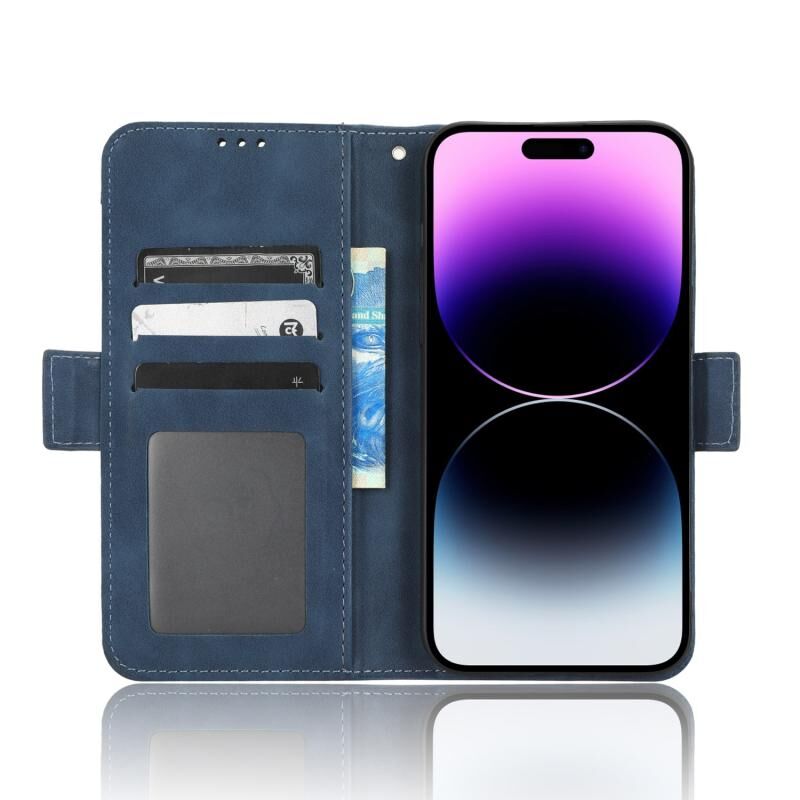 Θήκη τηλεφώνου από δέρμα με υφή μοσχαριού, αίσθηση δέρματος για iPhone 14 Pro, με θήκες για κάρτες (Μαύρο)