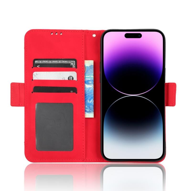 Θήκη τηλεφώνου από δέρμα με υφή μοσχαριού, αίσθηση δέρματος για iPhone 14 Pro, με θήκες για κάρτες (Μαύρο)