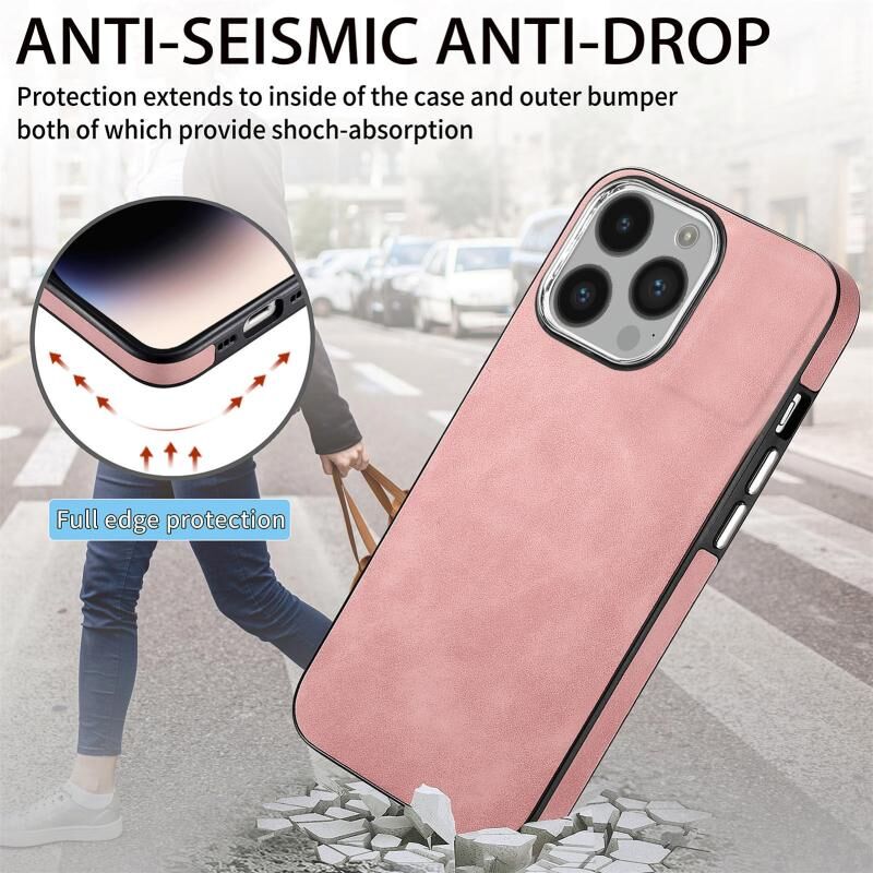 Θήκη κινητού τηλεφώνου για iPhone 14 Pro με αίσθηση δέρματος, ηλεκτρολυτική επίστρωση TPU, αντικραδασμική (Μαύρο)
