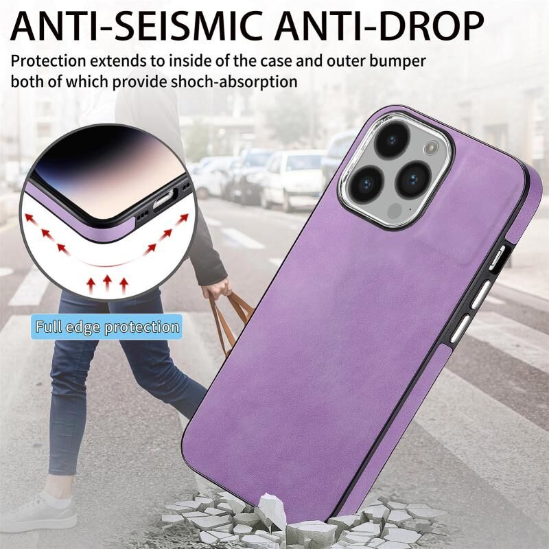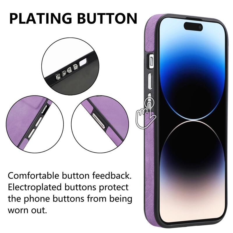 Θήκη κινητού τηλεφώνου για iPhone 14 Pro με αίσθηση δέρματος, ηλεκτρολυτική επίστρωση TPU, αντικραδασμική (Μαύρο)