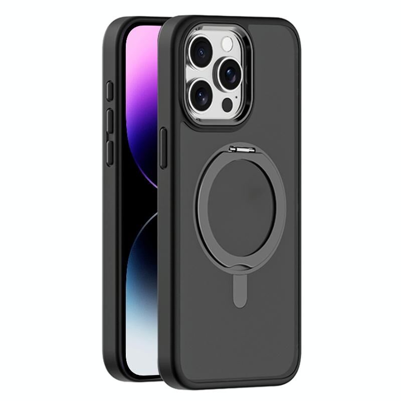For iPhone 14 Pro Skin Feel Frosted MagSafe Magnetic Rotating Holder Phone Case(Black)