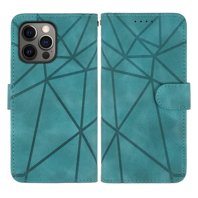 Θήκη τηλεφώνου δερμάτινη με γεωμετρικά σχέδια και αίσθηση δέρματος για iPhone 14 Pro (Μαύρο)