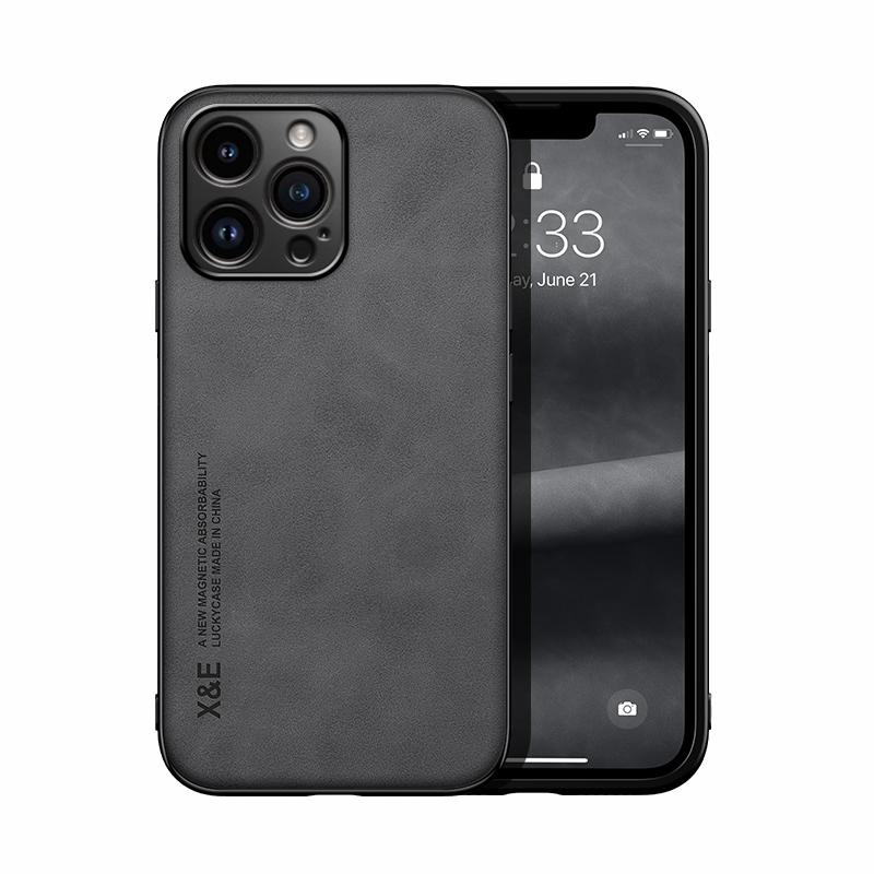 Θήκη κινητού τηλεφώνου με μαγνητικό δέρμα για iPhone 14 Pro (Ανοιχτό Γκρι)